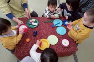 保育園はやさしい木造園舎で、まわりはたくさんの自然に囲まれた環境です。 子どもが主体的に自分がしたい遊びを見つけ、実現できるように、室内の環境づくりを工夫しています。