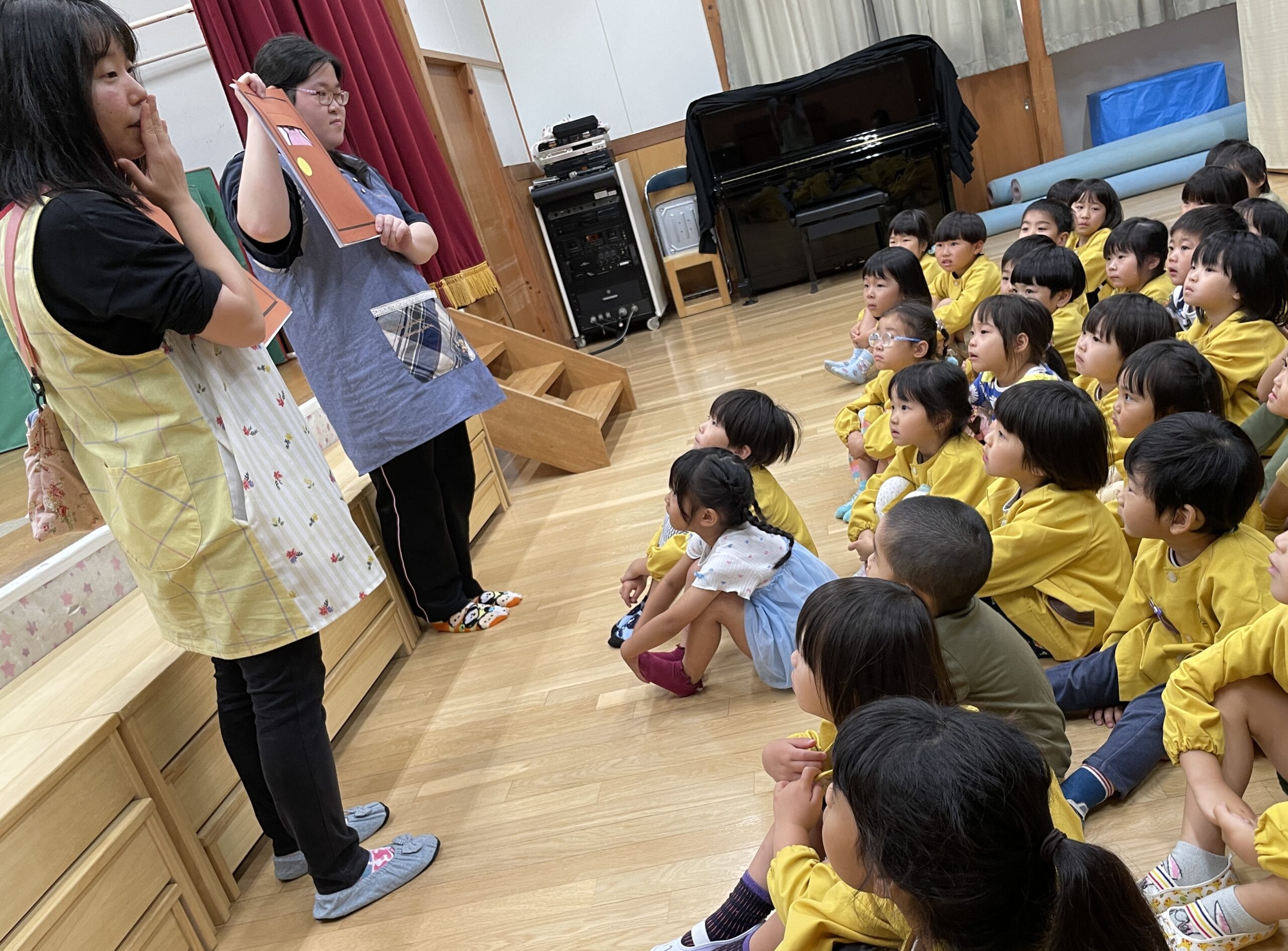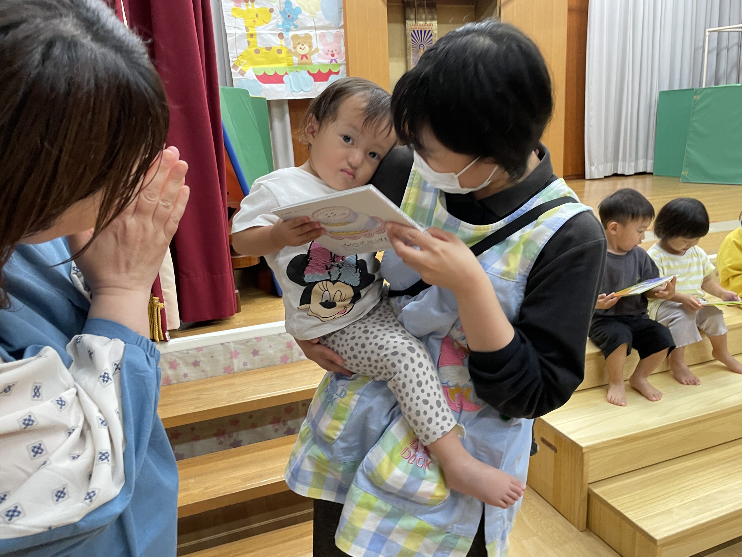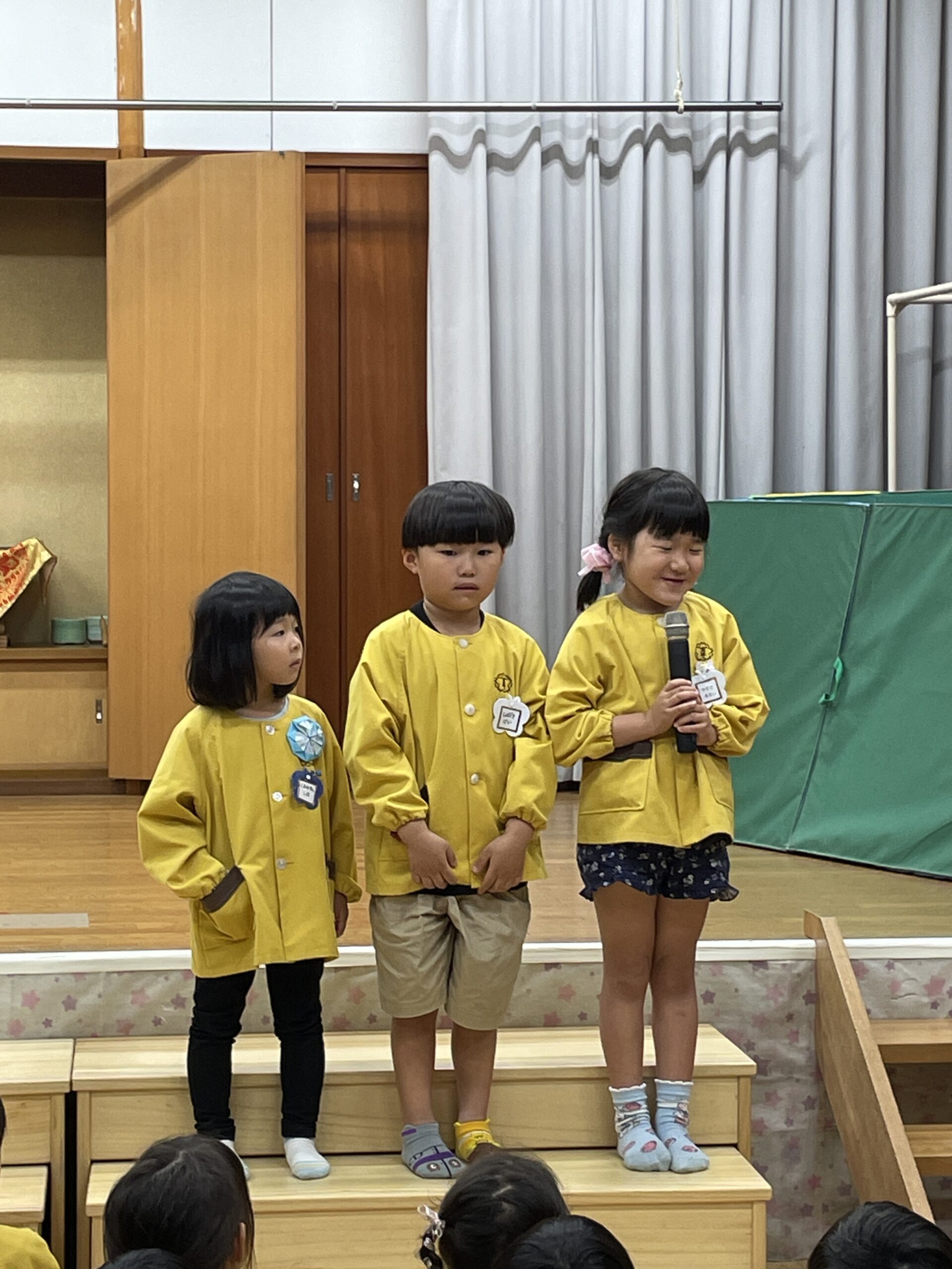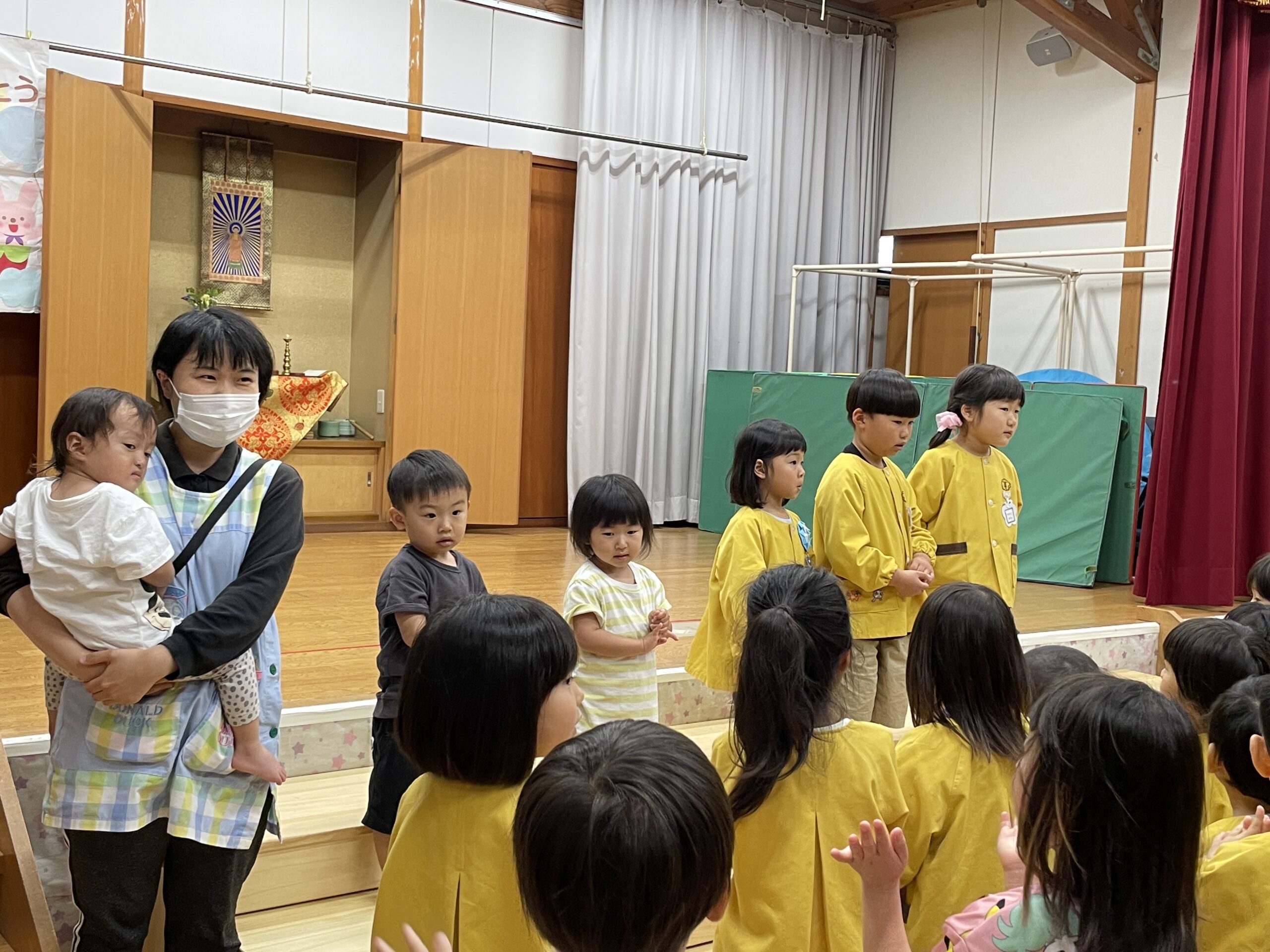 5月誕生会✨ 2024.05.28 今日は5月生まれのお誕生会でした。 6人のお友だちのお祝いをしました! さっそくインタビューへ🎤 質問は『好きな食べ物』 緊張しながらしっかり答えてくれました✨ 次は園長先生からの絵本のプレゼント🎁 最後は係の保育士から 『扉の所にいる動物はだぁれ、クイズ〜!』 今日のおやつは 『フルーツポンチ』 5月生まれのお友だち これからもいっぱい遊んで もっともっと大きくなってね♪ < >