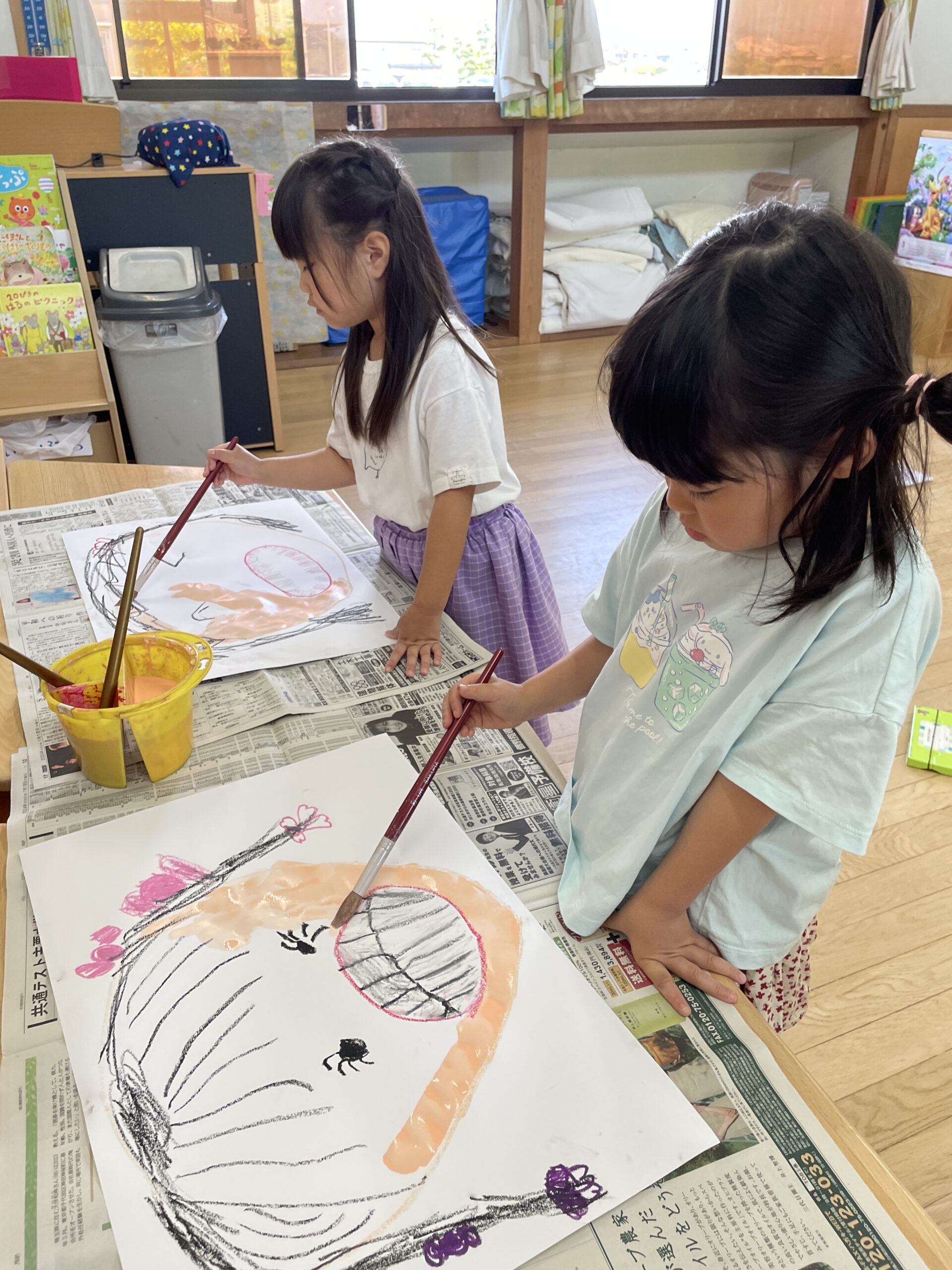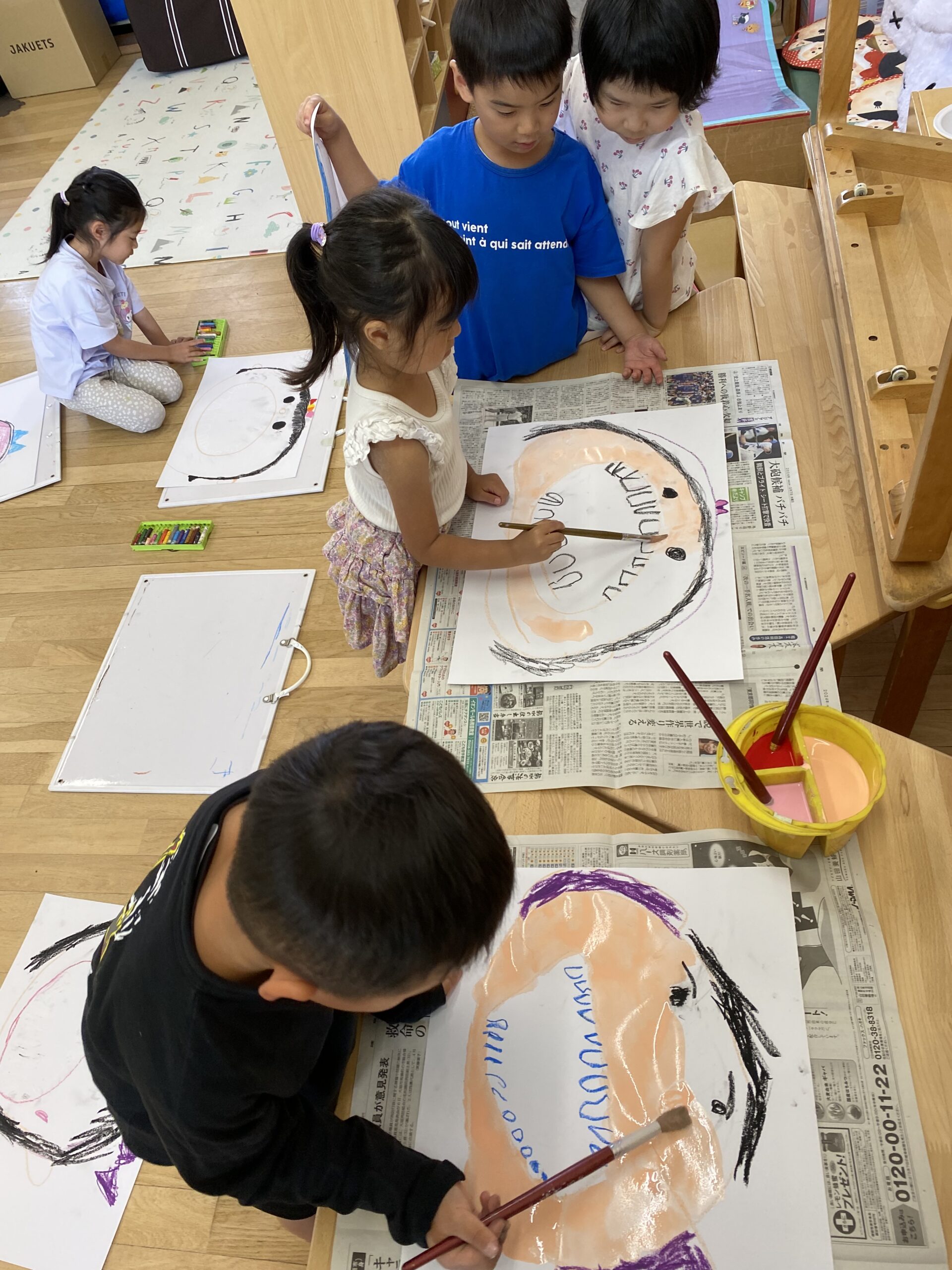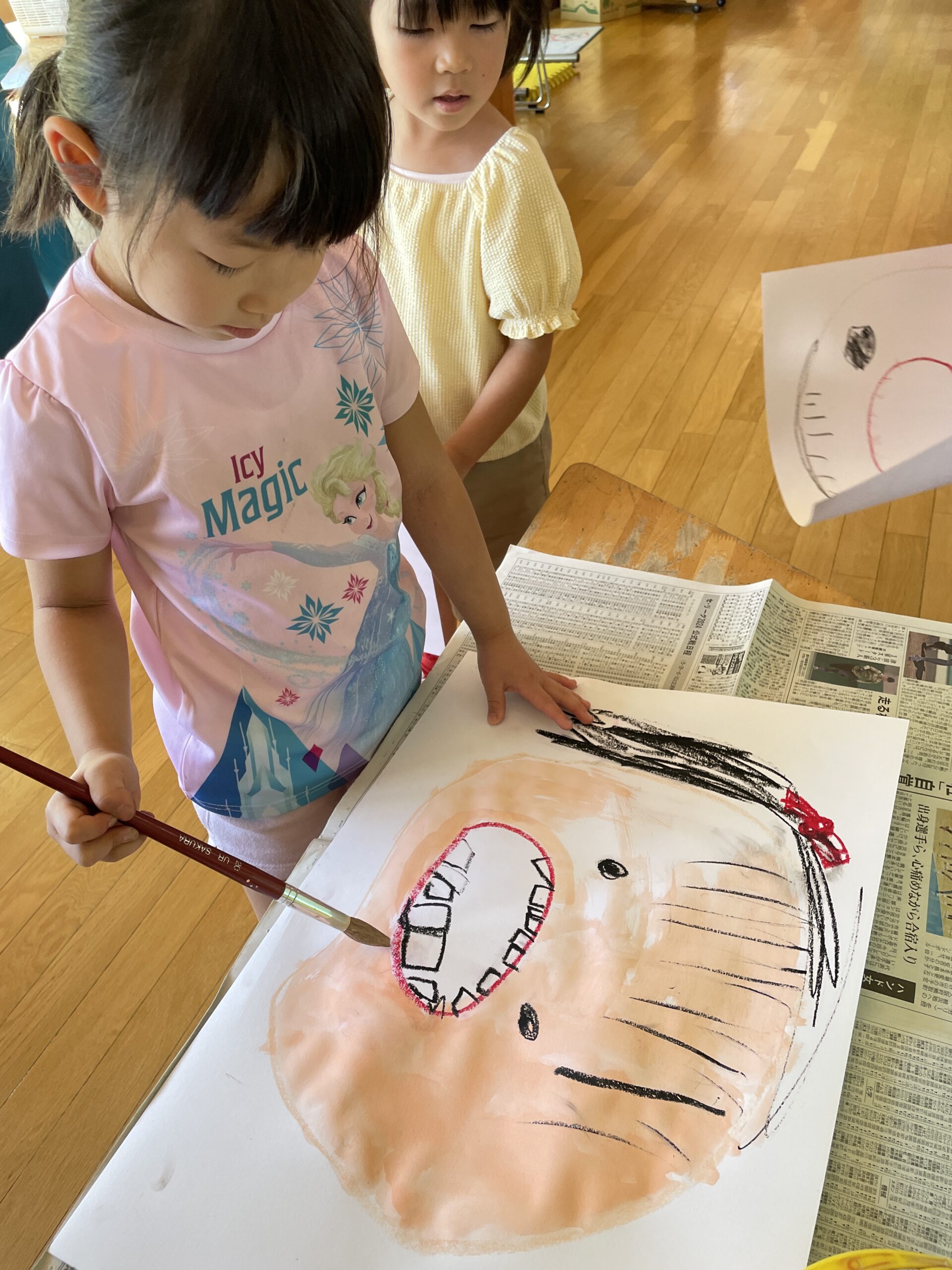 そして、画用紙に大きな口、顔を描きました。