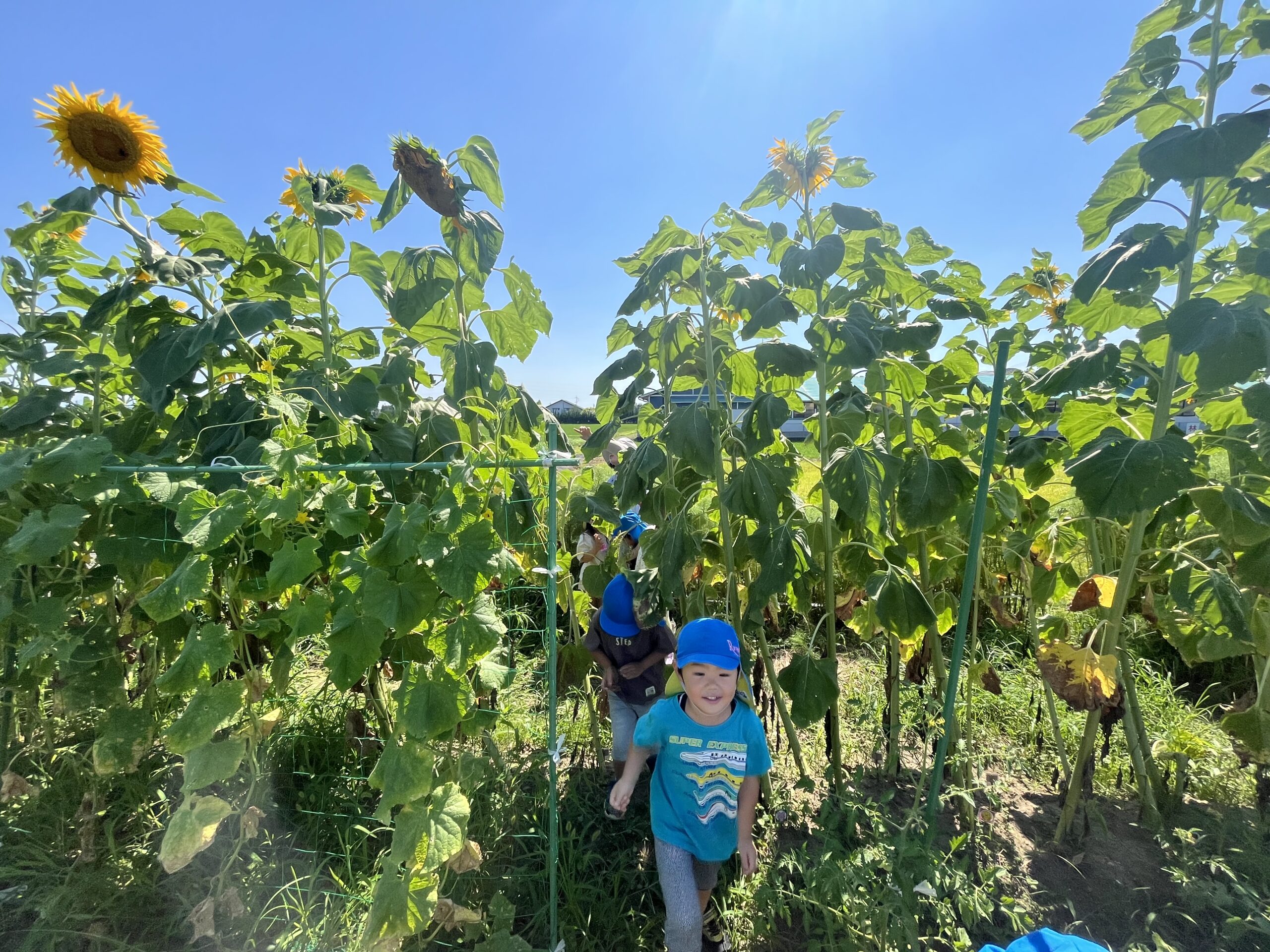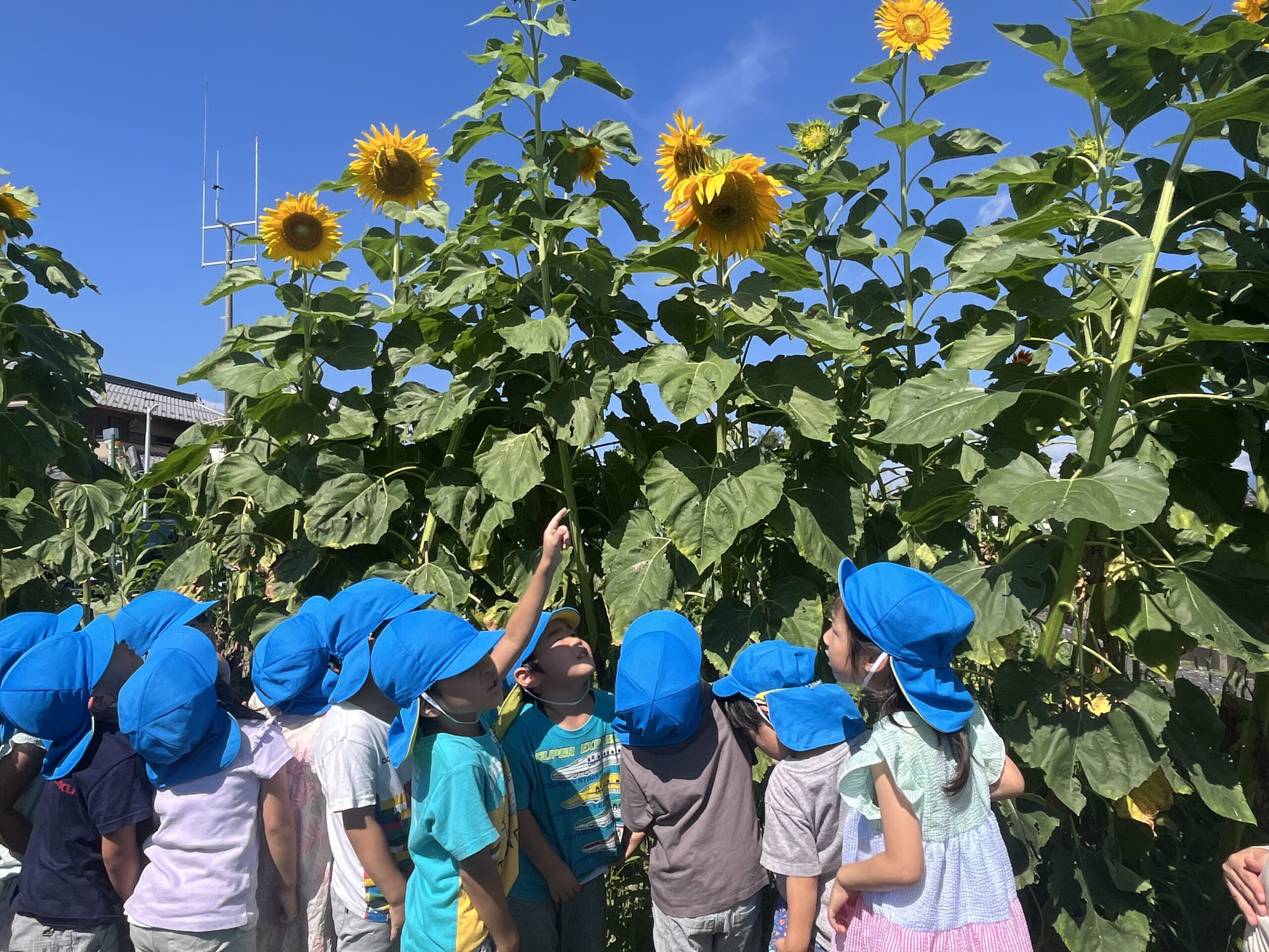 ひまわり🌻あやめ組 2024.07.23 あやめ組育てていたひまわり🌻が たくさん、咲きました🌻 『大きくなったね!』 『たくさんひまわり🌻咲いたね!』 『ひまわり🌻かわいい💓』 大事に育てていたひまわりの 生長に喜びを感じた子どもたちです♬ 『いくつ咲いてるかな?』 『1.2.3.4.5。。。』 みんなで数えながら楽しみました! ひまわりのトンネルをくぐり ひまわり🌻の生長をたくさん感じました! こんな変わったひまわり🌻も咲きました♬ < >