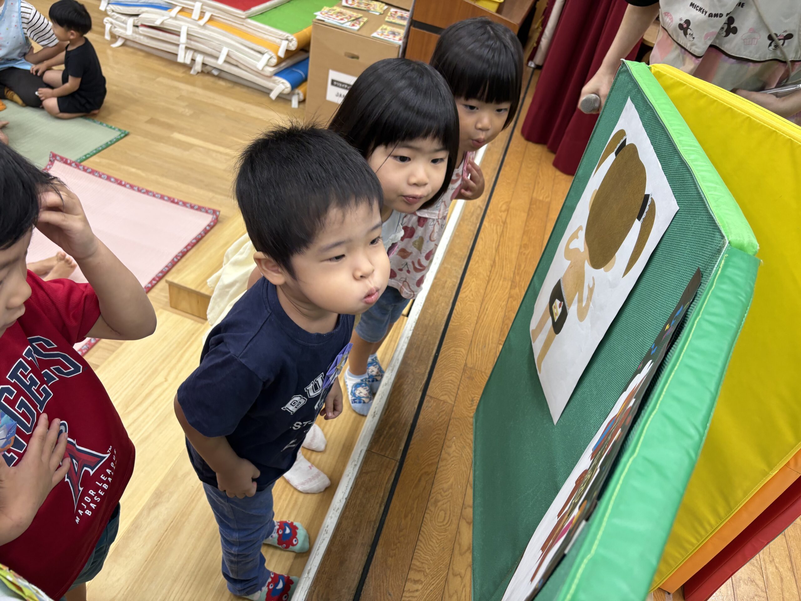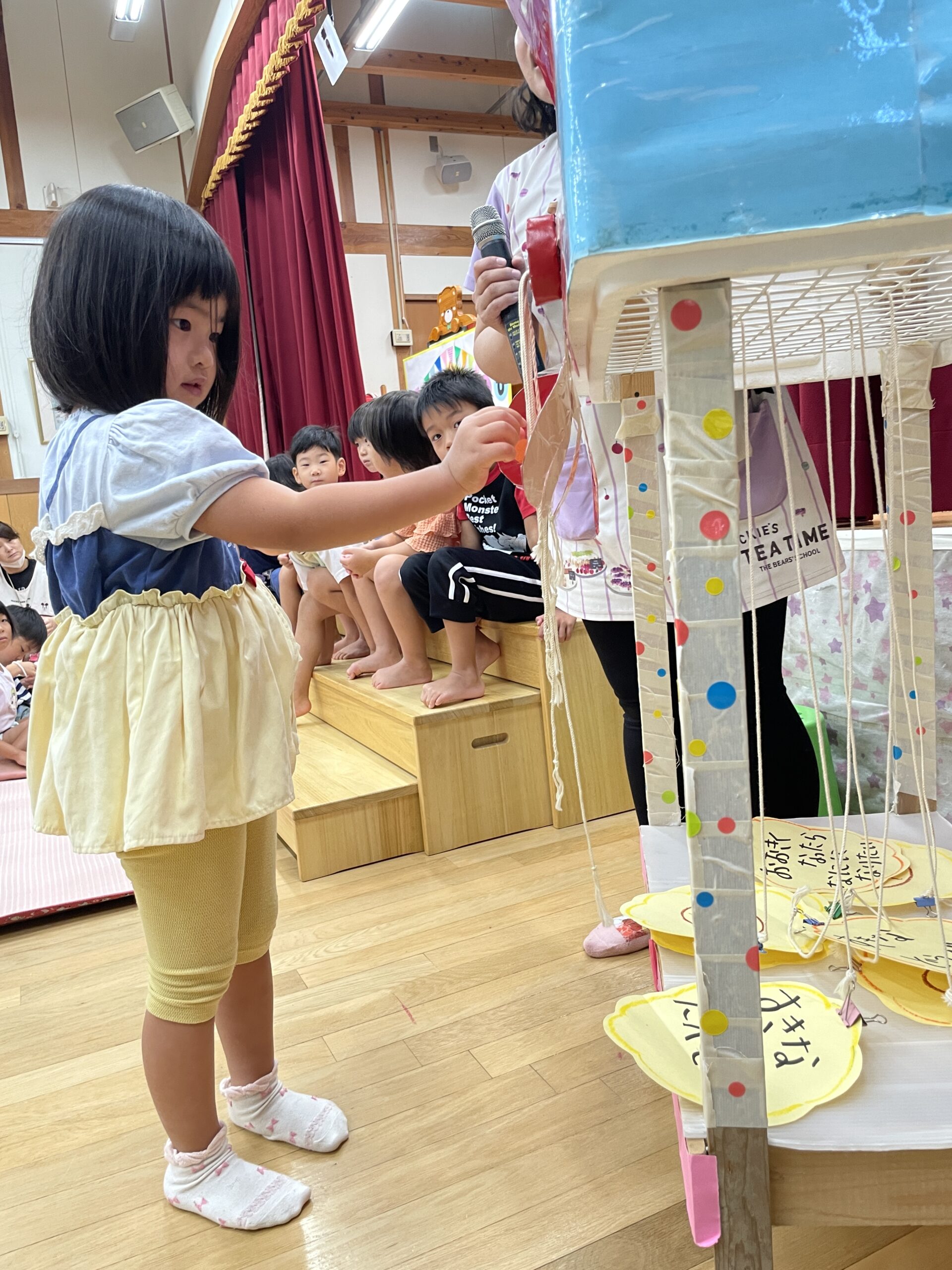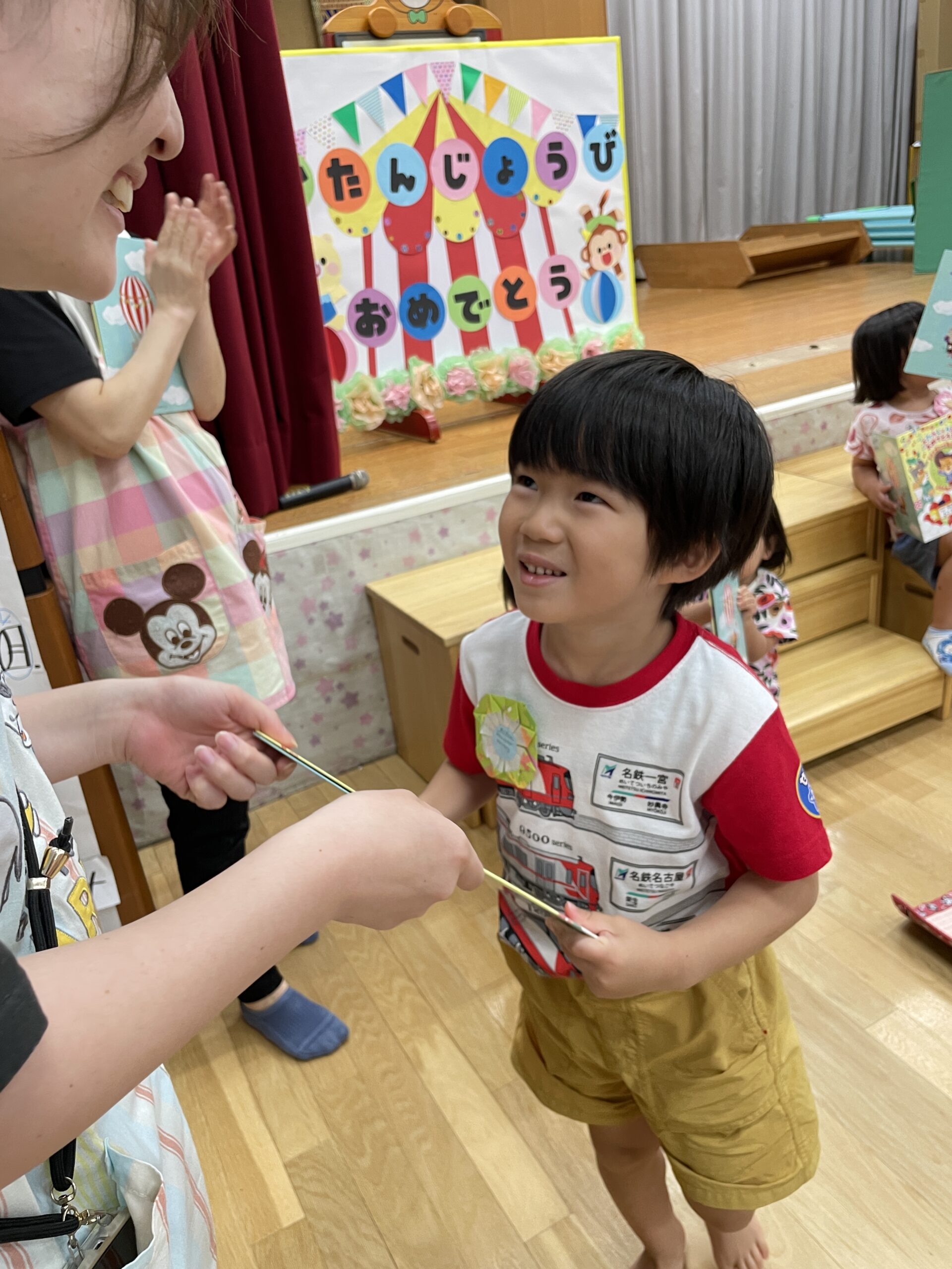 8月🌻誕生会 2025.08.28 今日は8月生まれの お友だちの誕生会でした🎂 まずはインタビュー🎤 今回は千本引きをして質問に 答えてくれました♬ 絵本のプレゼント 保育士からの出し物 『おかあさんのパンツ』より 『お誕生日おめでとう🎉』 誕生会のおやつは 『レモンムース🍋』 美味しかったよ! 8月生まれのお友だち お誕生日おめでとう! < >