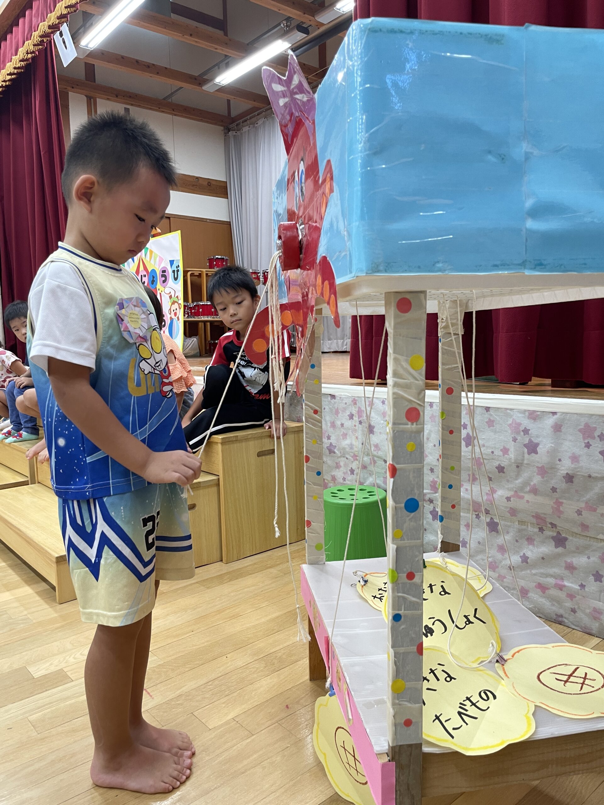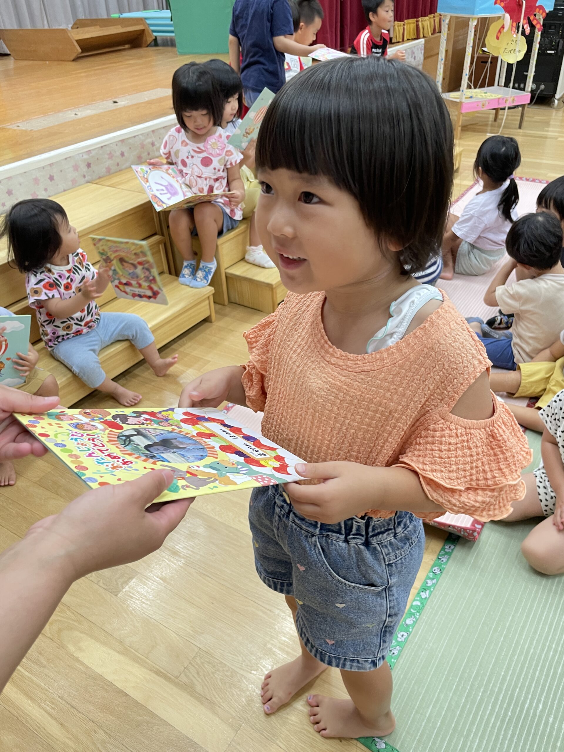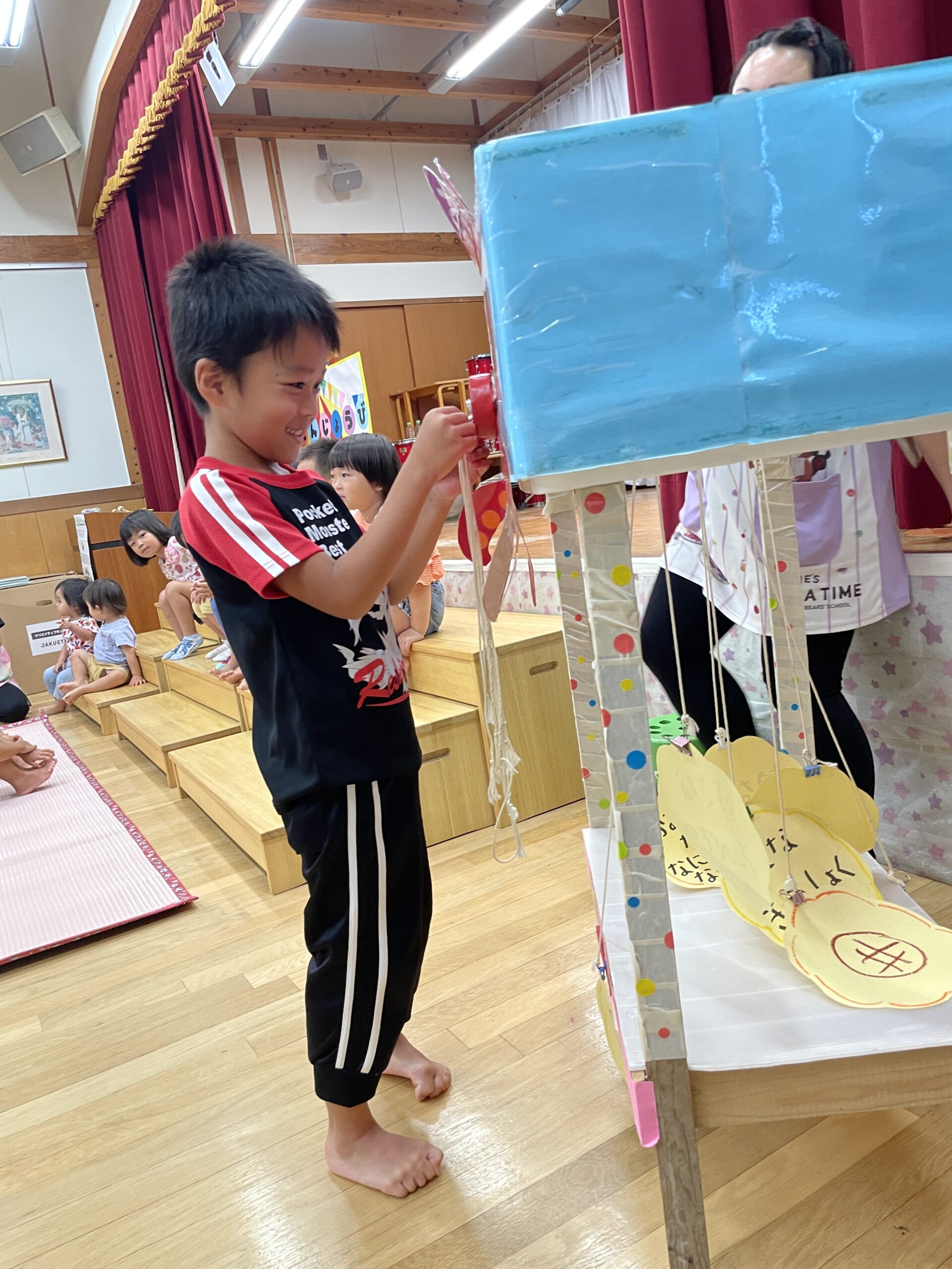 8月🌻誕生会 2025.08.28 今日は8月生まれの お友だちの誕生会でした🎂 まずはインタビュー🎤 今回は千本引きをして質問に 答えてくれました♬ 絵本のプレゼント 保育士からの出し物 『おかあさんのパンツ』より 『お誕生日おめでとう🎉』 誕生会のおやつは 『レモンムース🍋』 美味しかったよ! 8月生まれのお友だち お誕生日おめでとう! < >