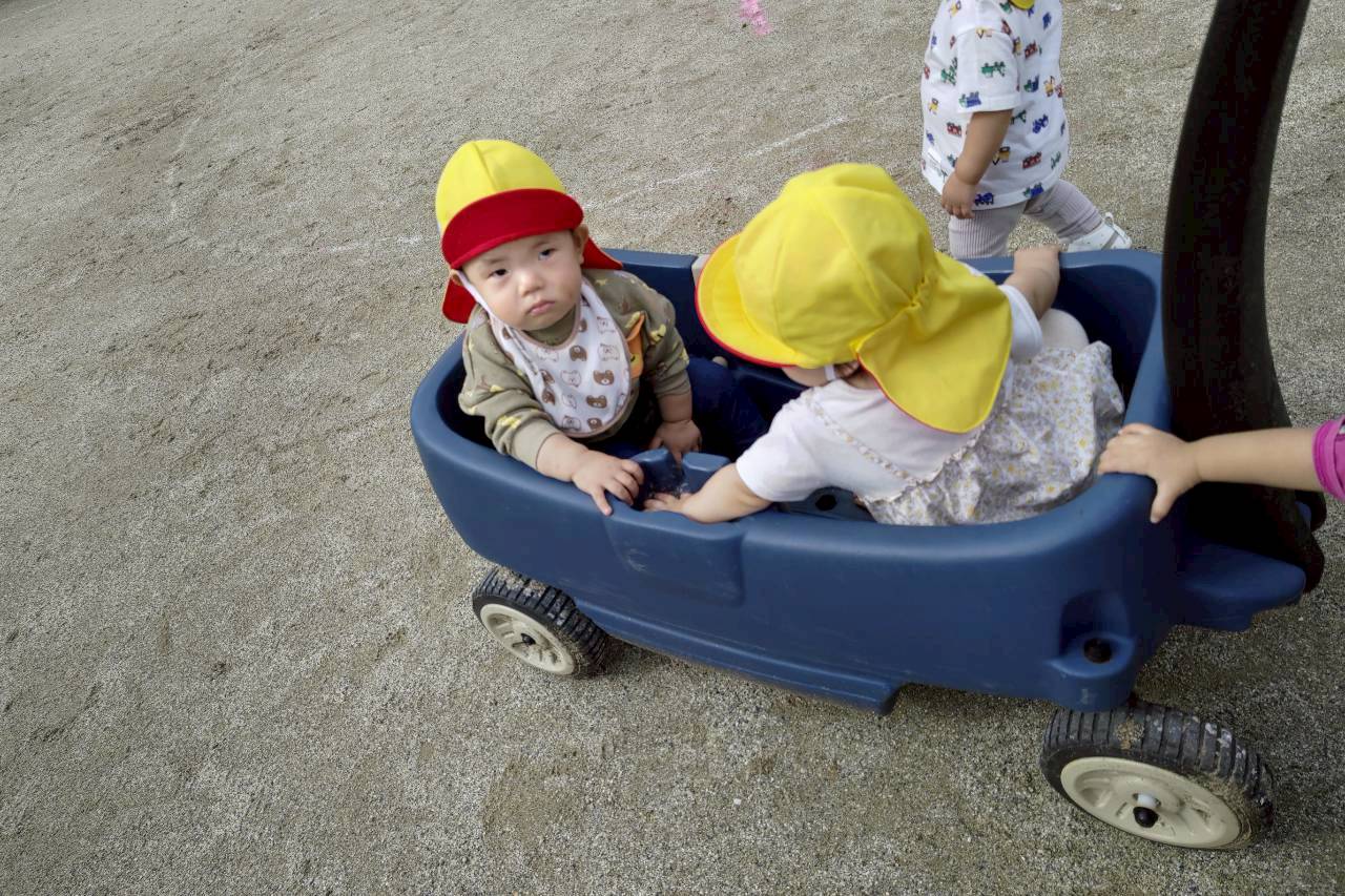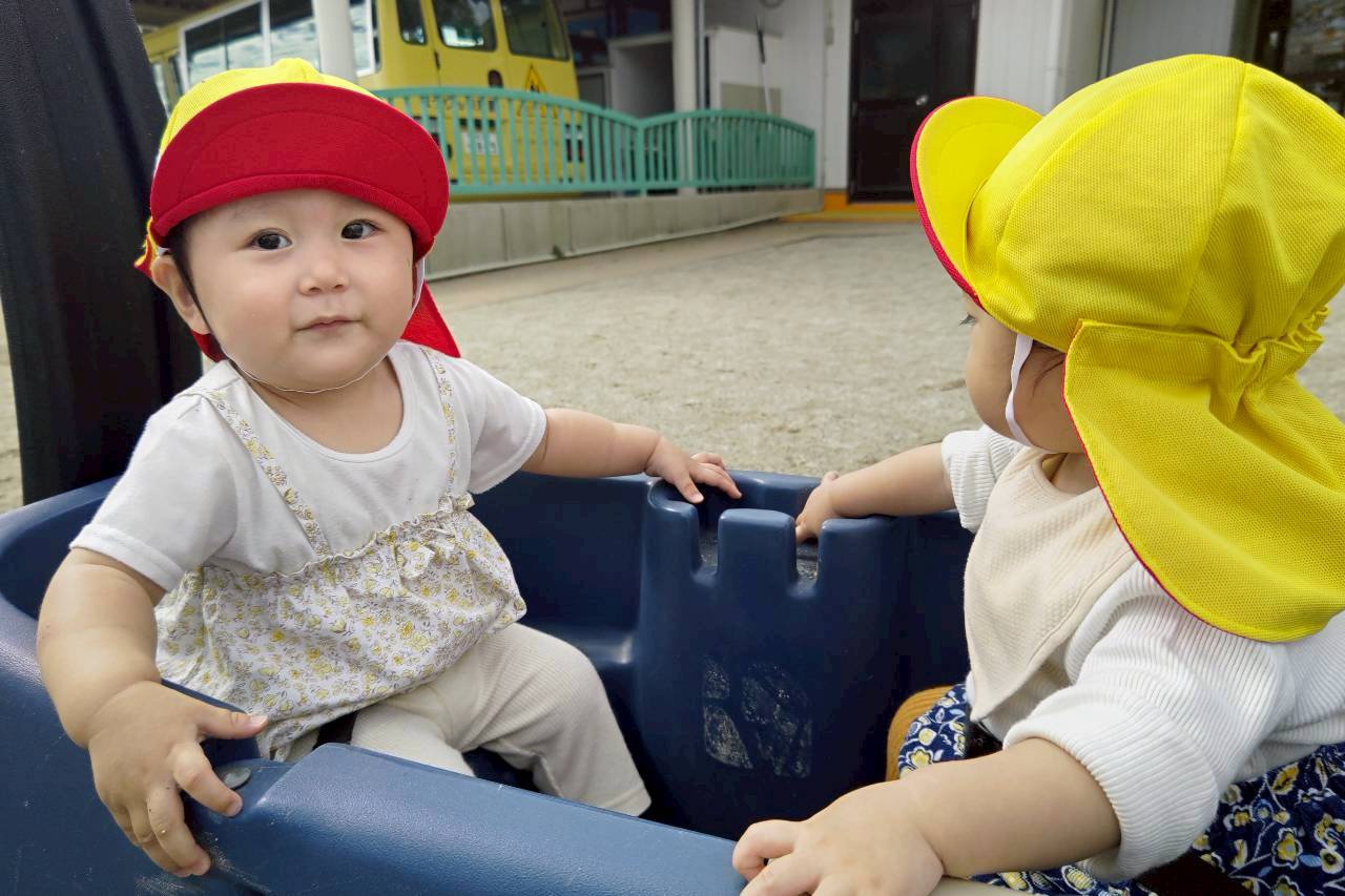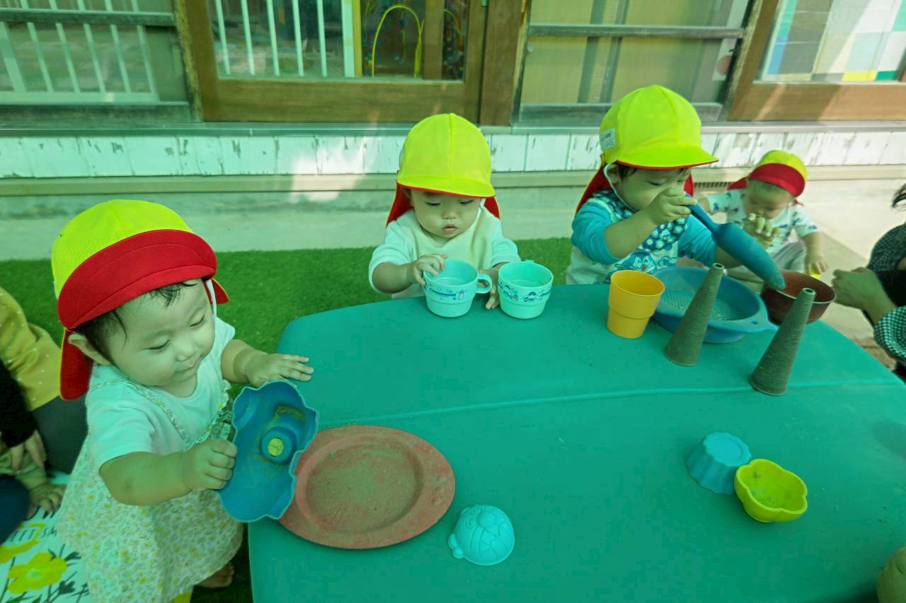 乳児園庭の砂場では·····