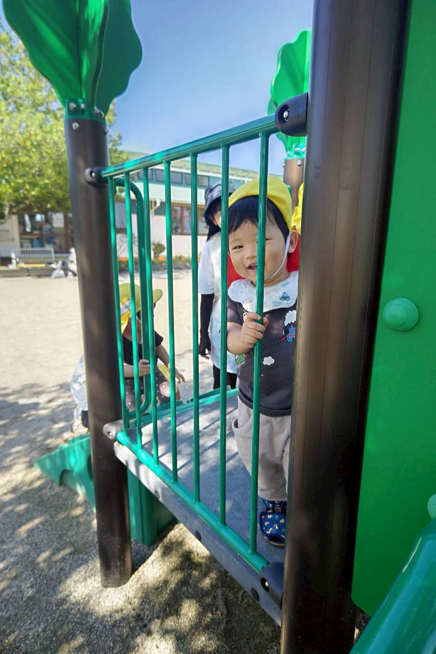 遊具に隠れながら