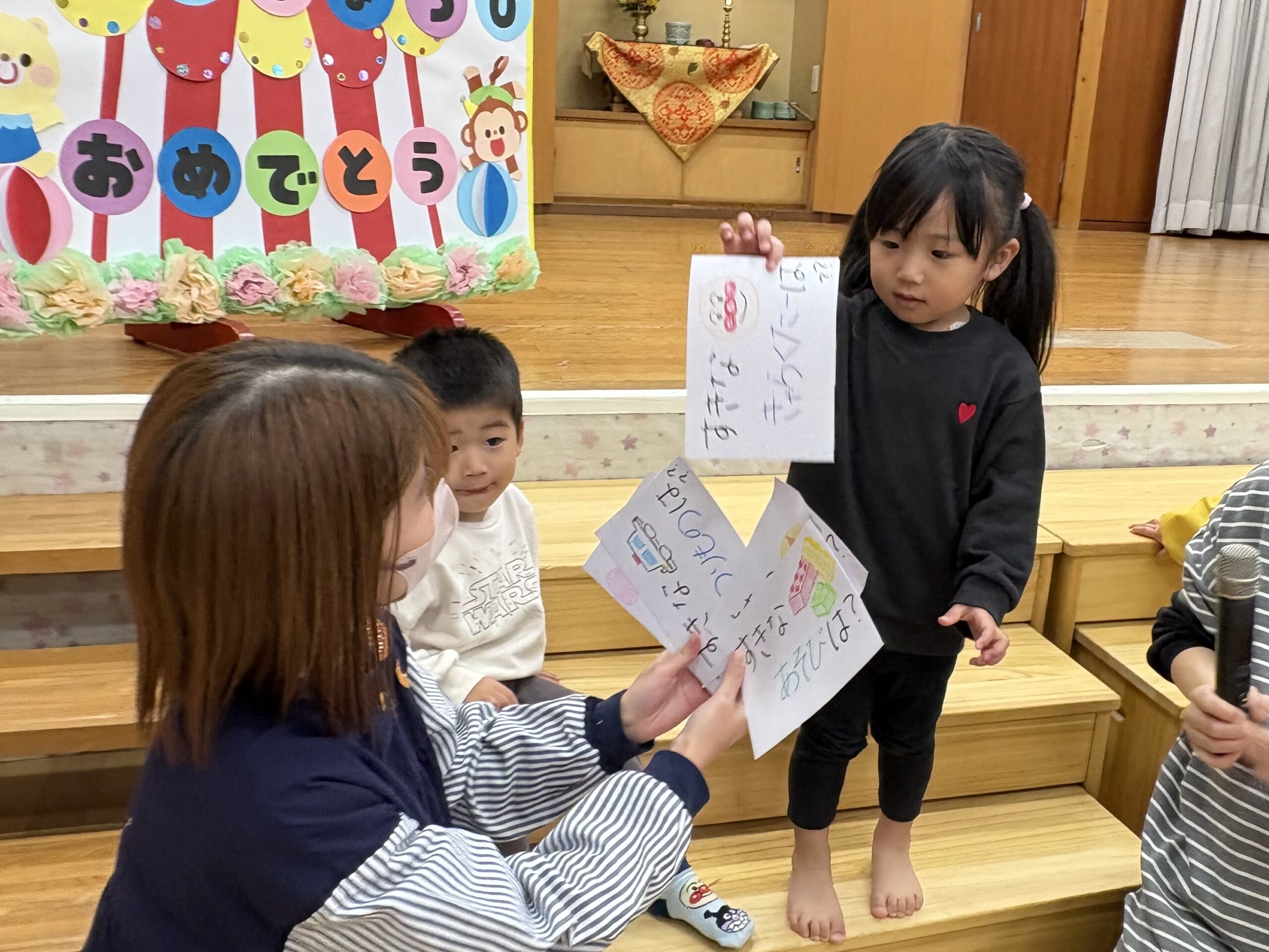 「はーい🙋」と元気いっぱいに答える子どもたちでした。