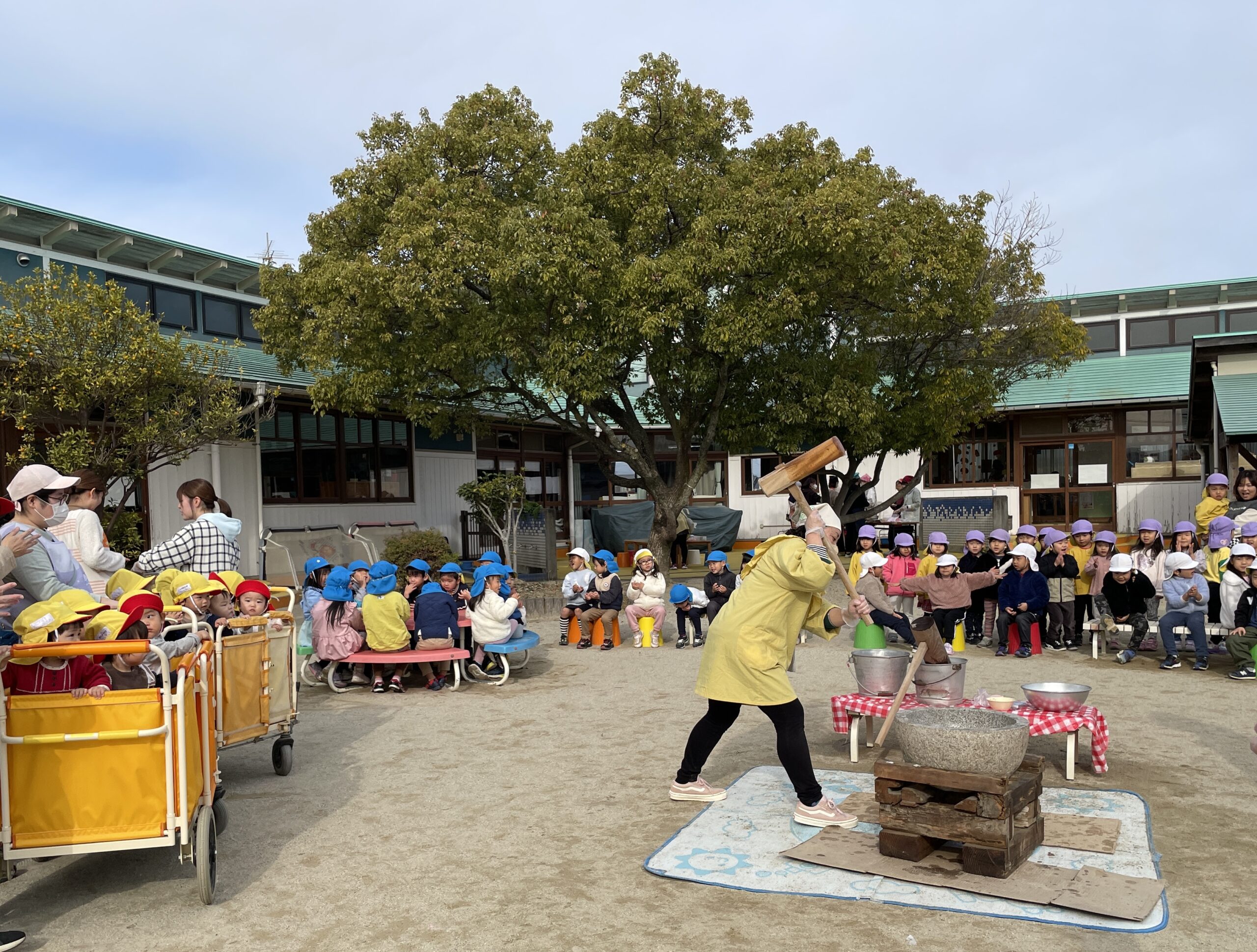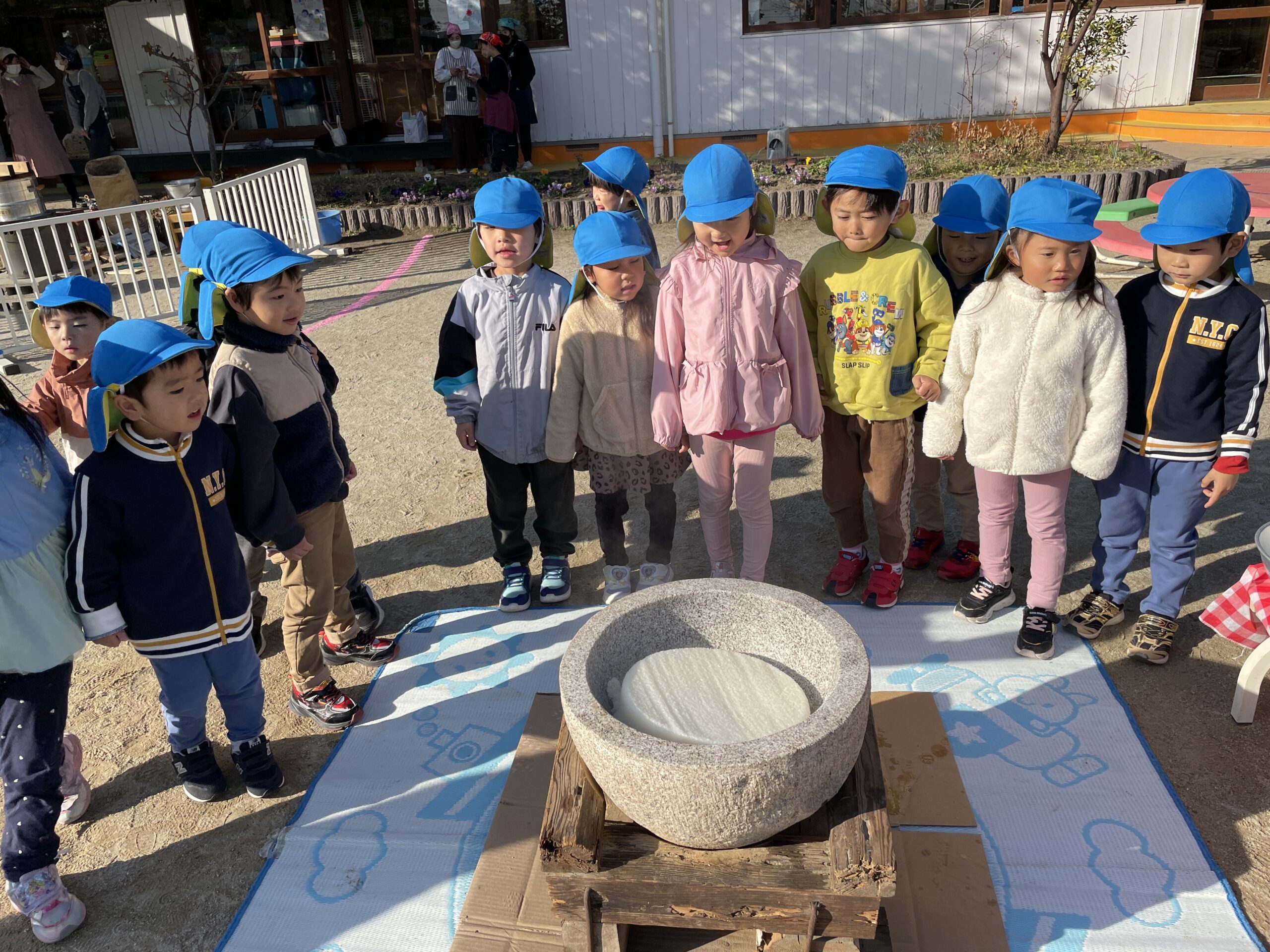 園庭で、おもちつきを行いました。