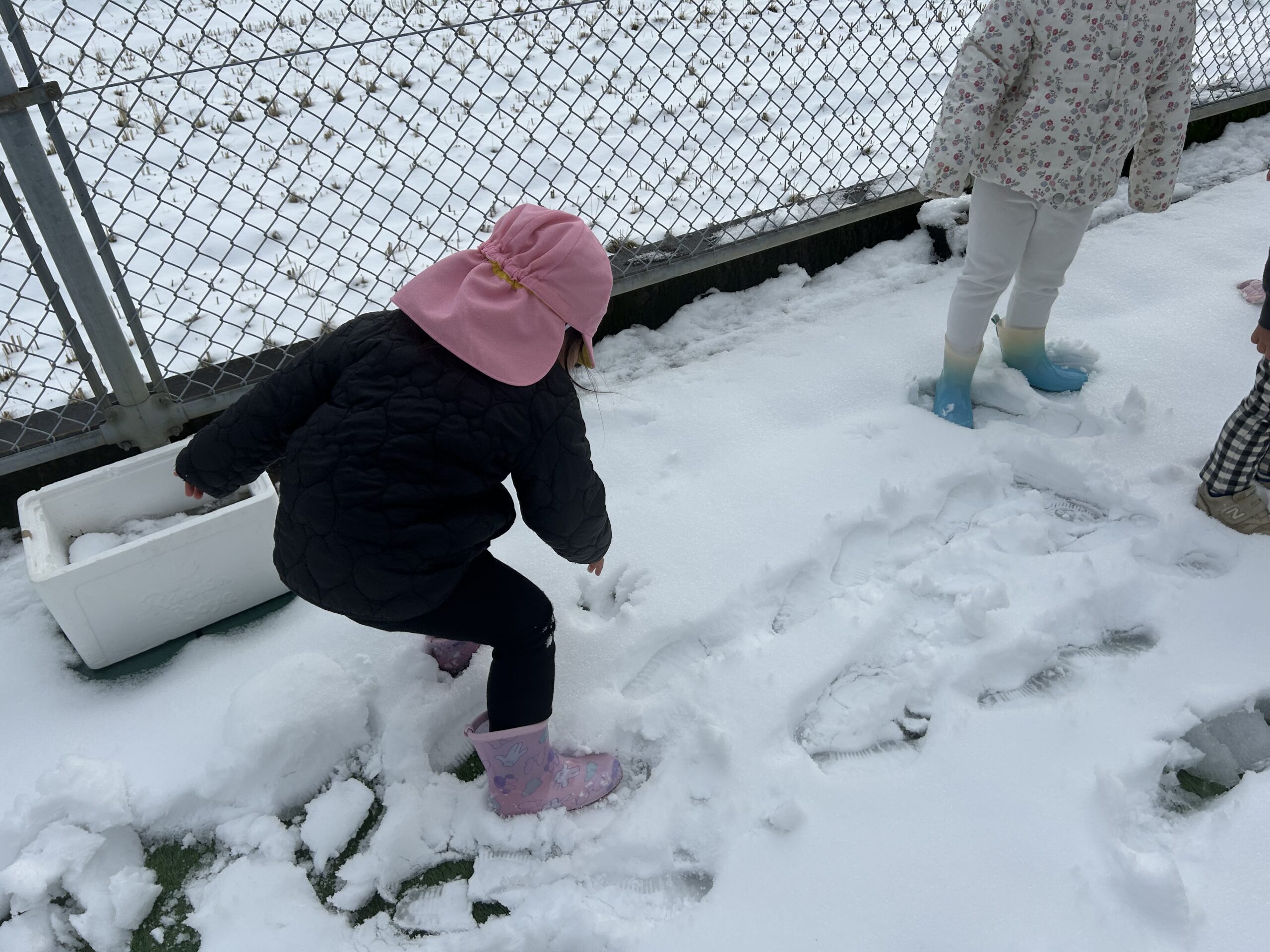 雪の上を歩くと足跡がついたり