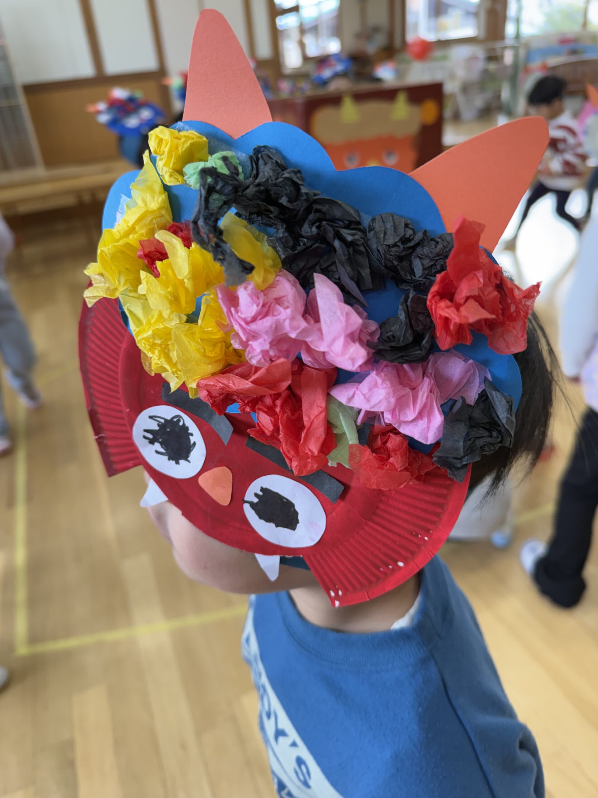 節分に向けて、鬼のお面作りをしました。