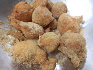 11月 お誕生会のおやつ 2021.11.30 今日のお誕生会のおやつは キャロットドーナツでした ドーナッツ生地に すりおろした人参が入っています やわらかめの生地を油のなかへ ポトリポトリと落としていくので 色々な形に仕上がります 外はカリカリ 中はもっちり まわりには、きな粉がたっぷりまぶしてあります カリカリして美味しい~ にんじん大好き~ どこに入っているのかな~ お口のまわりに きな粉いっぱい付けて 美味しそうに食べていてくれました < >