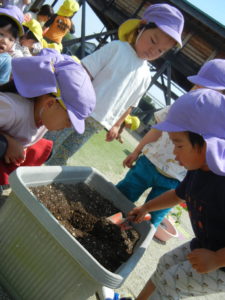 土の感触も楽しむ子どもたち♪