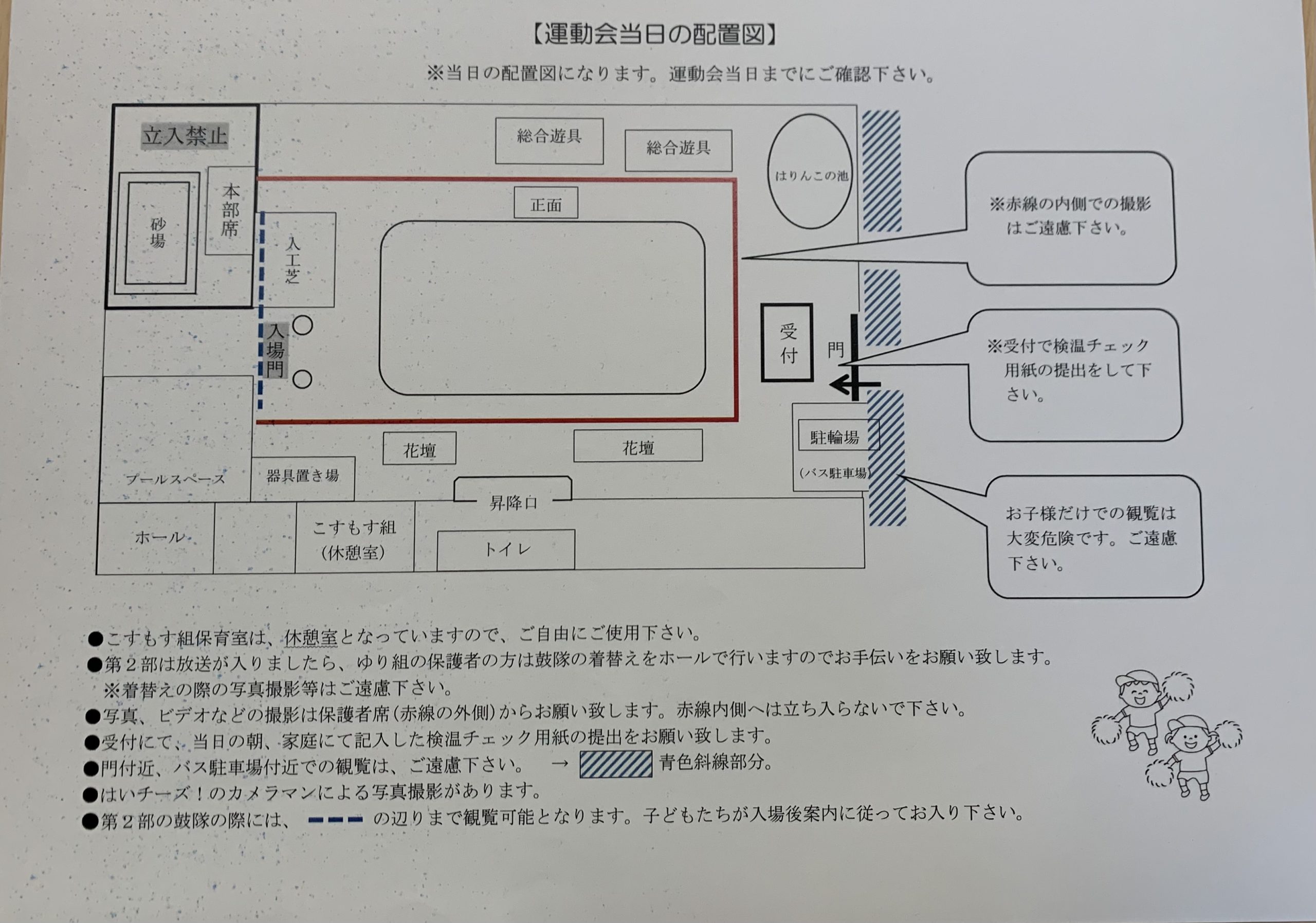 明日は運動会🚩 2022.10.21 明日はいよいよわくわくうんどうかい☆ 子どもたちのわくわくする気持ちも 高まっています。 「あれは国旗だよね!」 「うさぎどーこだ!!」 みんなで作ったフォトスポットも大人気です! 事前に配布しましたプログラムや園だよりにも 再度目を通していただき約束を守って ご参加の方よろしくお願いいたします。 明日はどんな姿が見られるかな。。。 楽しみですね♪ < >